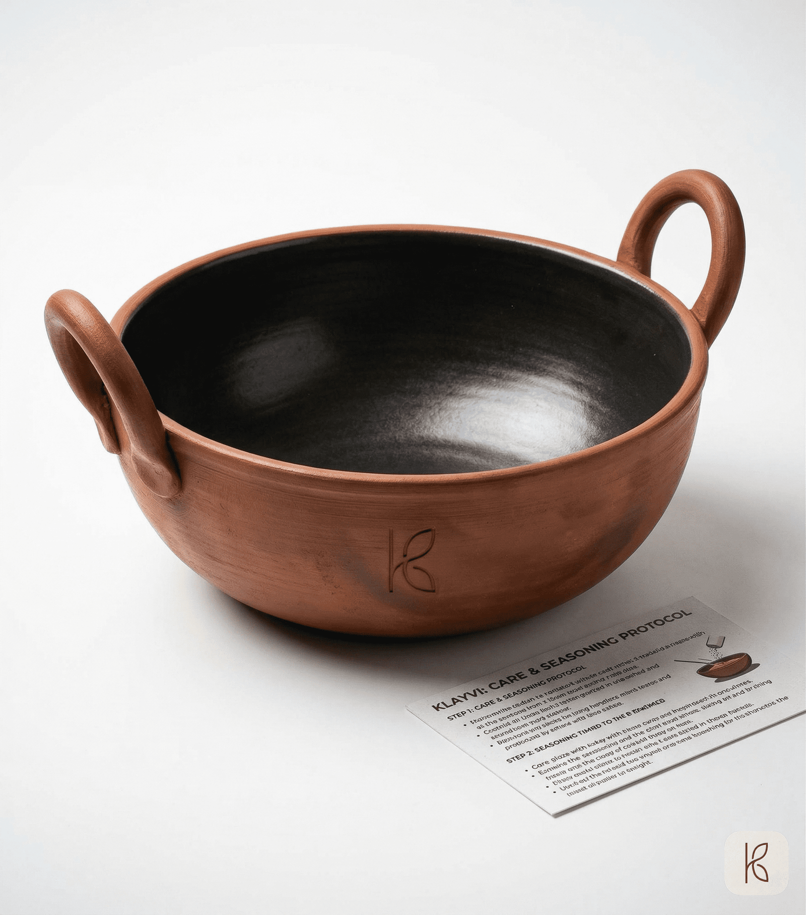 - Seasoning Protocol Card: Included in the Clay Care Passport — a complete first-30-days guide specific to the kadhai.