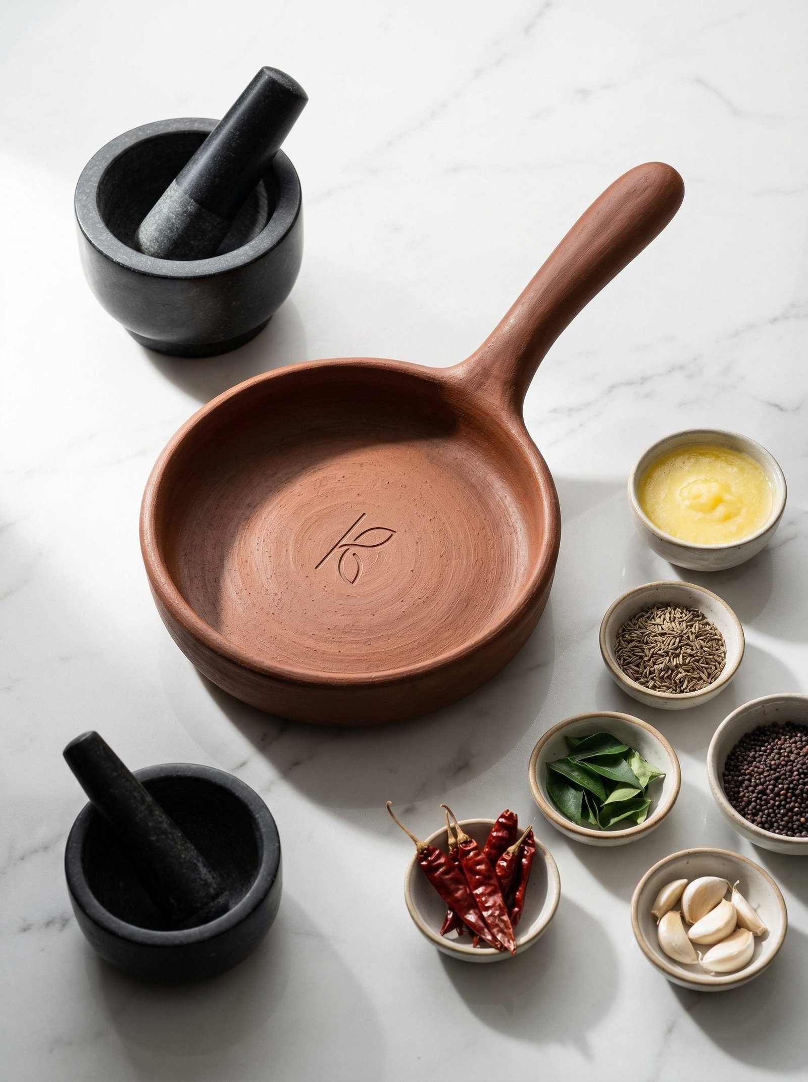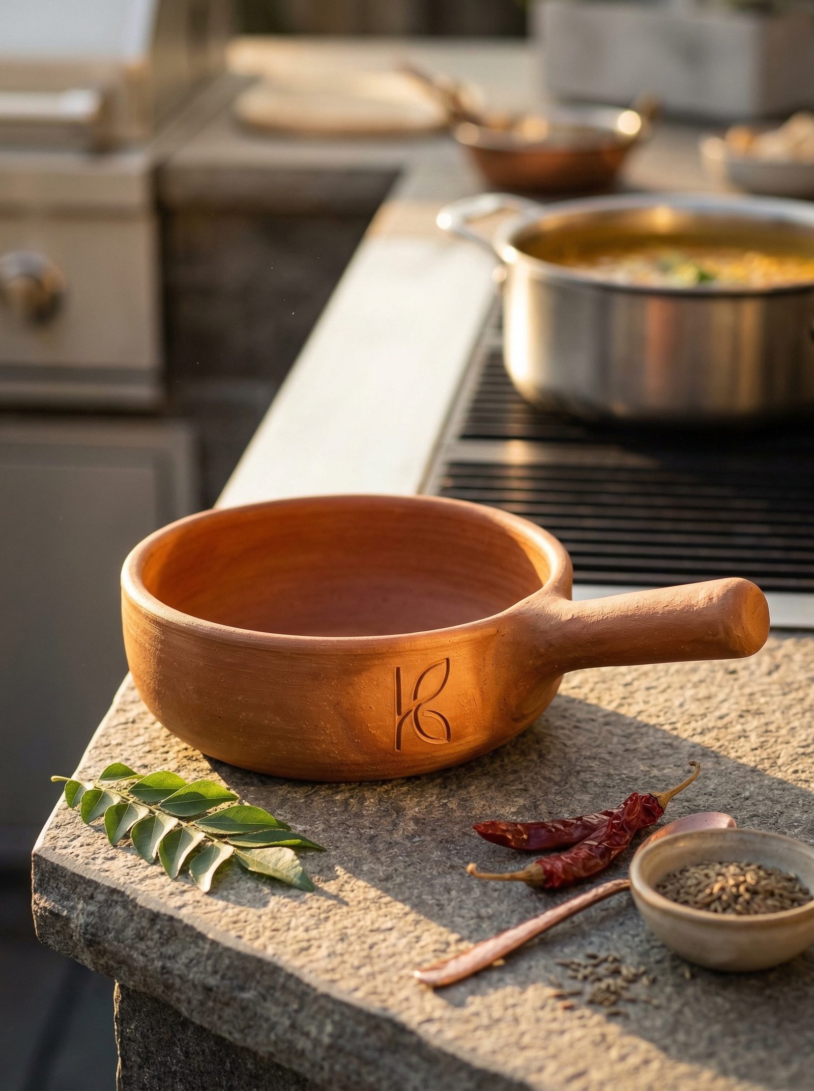 Yes. The clay tadka pan is a precision tempering vessel for any cuisine. Garlic confit in olive oil. Chilli oil. Herb-infused butter. The clay’s even heat and zero-reactivity make it ideal for any temperature-sensitive fat infusion.