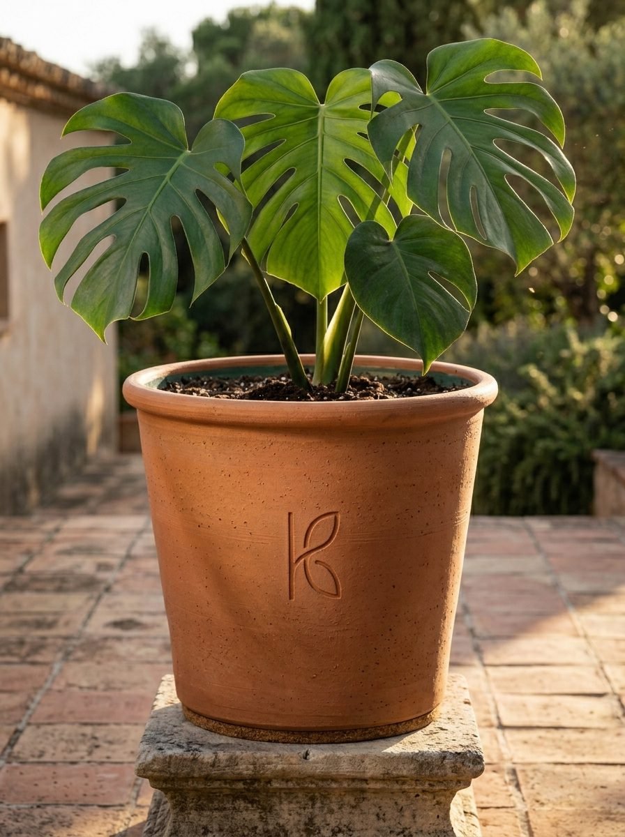 The 25cm planter is where the clay vessel starts to become visible in its own right — not just a container for the plant above it, but an object with its own presence. The warm sienna of the terracotta at 25cm scale reads in a room. Against a white wall, in afternoon light, with a monstera growing out of it, a 25cm clay planter makes the room look considered. The anti-topple weighted base is specific to the 25cm and 35cm sizes, where the height-to-base-width ratio of a standard tapered pot becomes a stability concern when the plant adds vertical height and weight. The base is widened by 2.5–3cm beyond the standard taper and slightly thickened to add weight at the base. The Science Indoor plants in 25cm+ clay containers provide documented measurable humidity contributions to their immediate environment. Research published in the Journal of Indoor Plant Science found that large-potted plants (diameter above 20cm) in clay containers contributed 15–20% more ambient humidity to the immediate surrounding air than the same plants in plastic containers of the same size, through the combination of transpiration and the clay’s own moisture release. In dry air-conditioned environments, this is a meaningful difference in air quality.