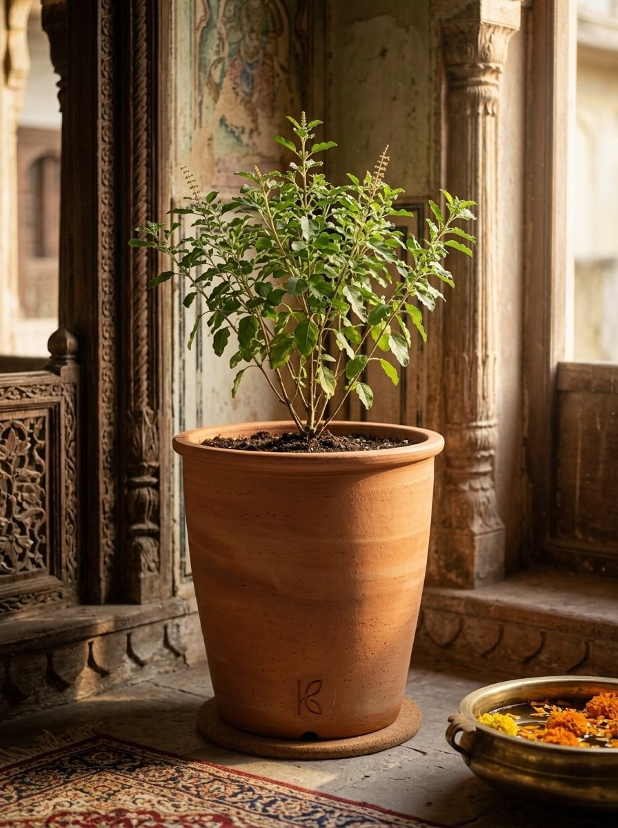 Yes — terracotta is equally effective outdoors. In climates with frost (below -5°C), bring clay pots inside for winter as repeated freeze-thaw cycling can crack the clay. In the Indian climate context, outdoor use is unrestricted year-round.