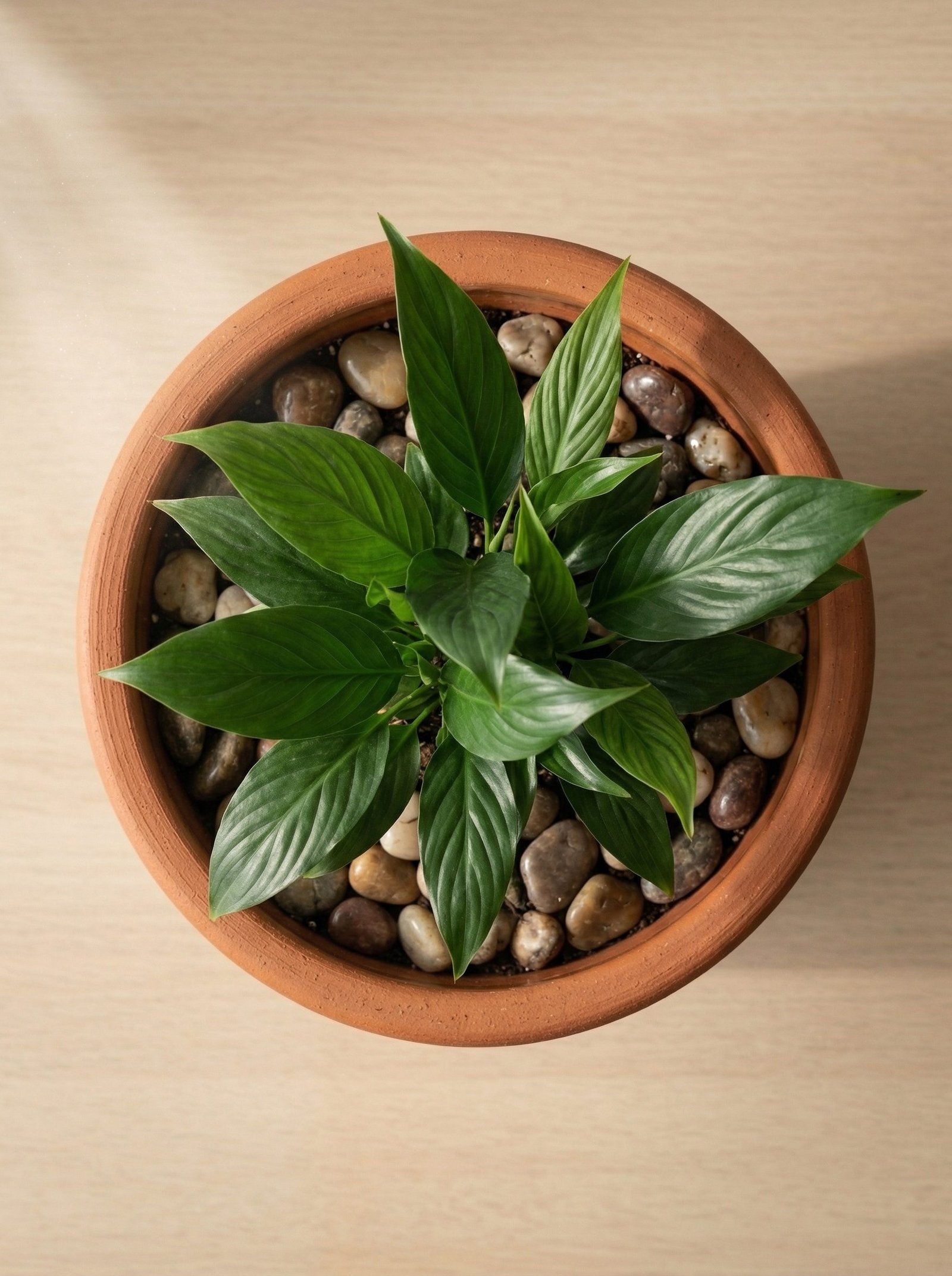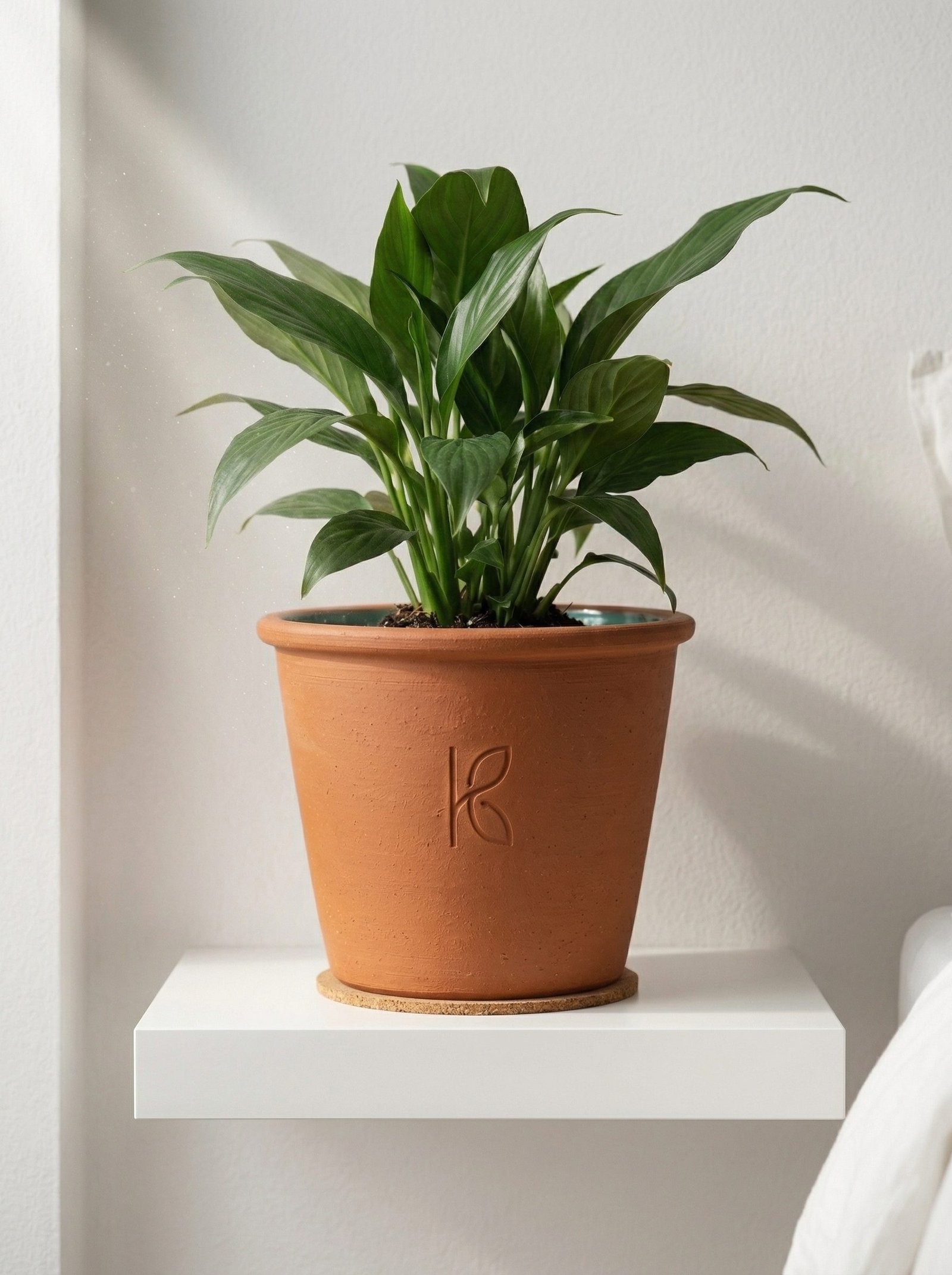 Yes. Peace lilies prefer the moisture regulation that clay provides — they are sensitive to both overwatering and underwatering, and clay’s buffering smooths these extremes better than plastic. Water when the lily’s leaves begin to droop slightly (the plant’s signal that it needs water); the clay will help you read this signal more clearly than plastic.