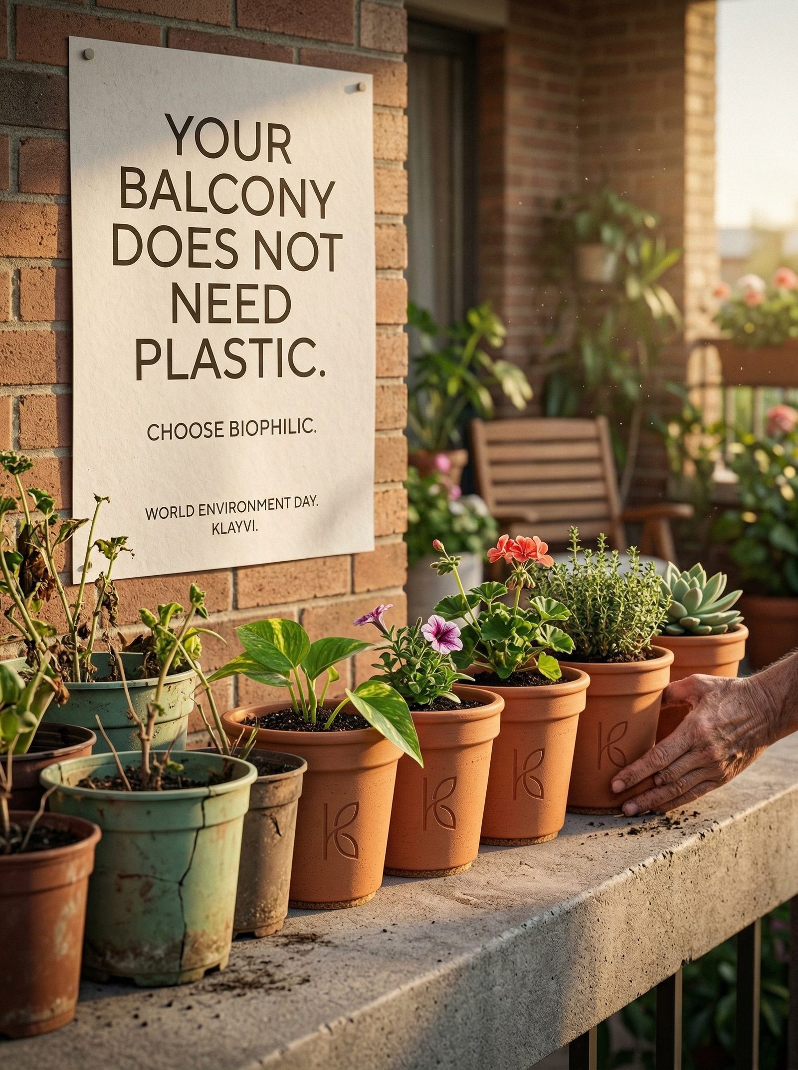 - Biophilic Effect — Documented: Contact with natural materials in interior spaces measurably reduces cortisol, lowers blood pressure, and improves cognitive performance. A terracotta plant pot on your desk is not decoration — it is documented environmental psychology contributing to your daily wellbeing.
