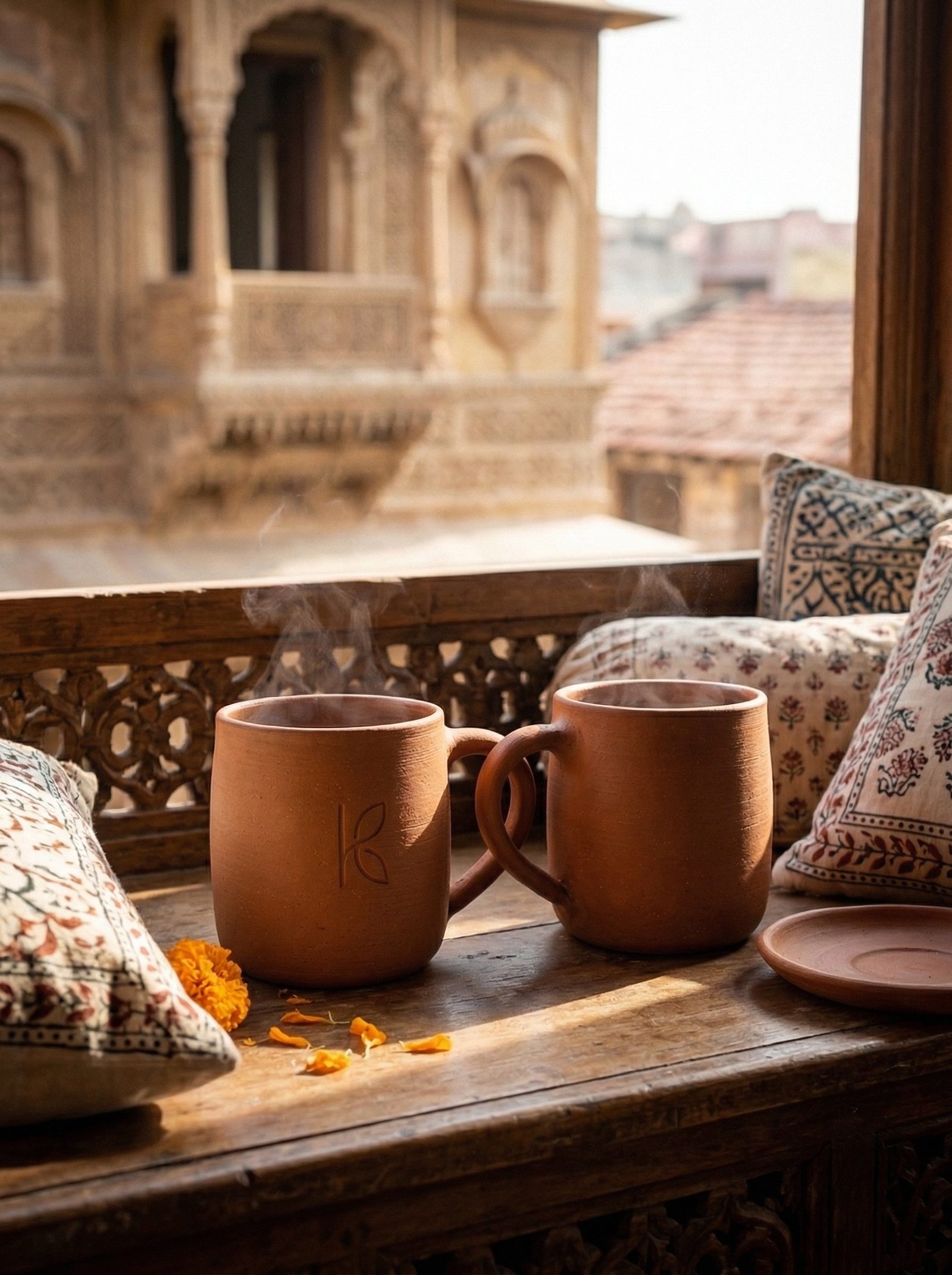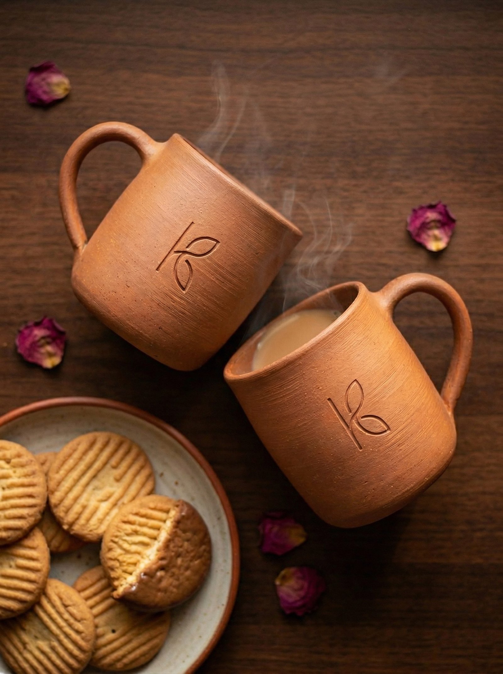 - Full Flavour Science: Both mugs deliver the same alkaline mineral contribution to tea chemistry that the single mug does. Every morning chai together, in clay, tasting the same.