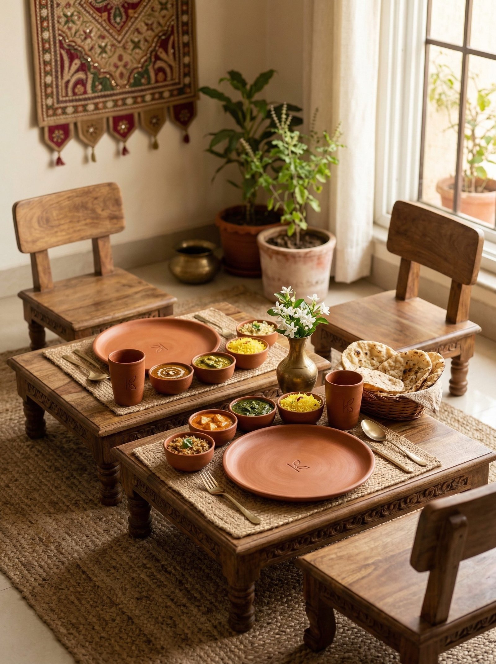 Everyday dinnerware affects the meal experience consistently, not occasionally. If two people eat dinner together 300 evenings a year on clay thalis, the cumulative effect of clay’s heat retention (food eaten at higher temperature is perceived as more flavourful), the visual presentation (cream-white interior makes food more vivid), and the material quality (heavy clay communicates value in the hand) amounts to 300 consistently better dinners per year. Not dramatically better. Genuinely better.