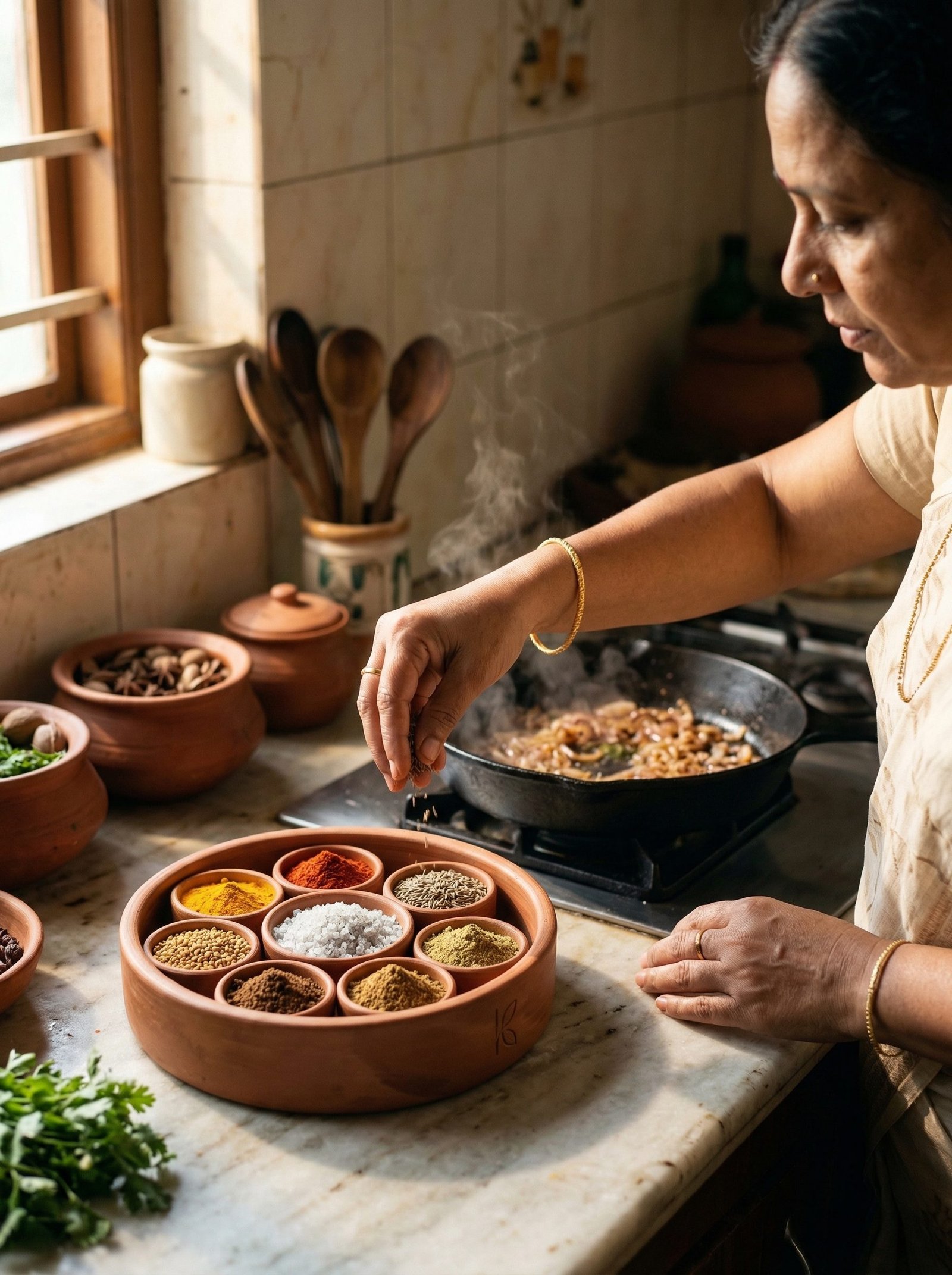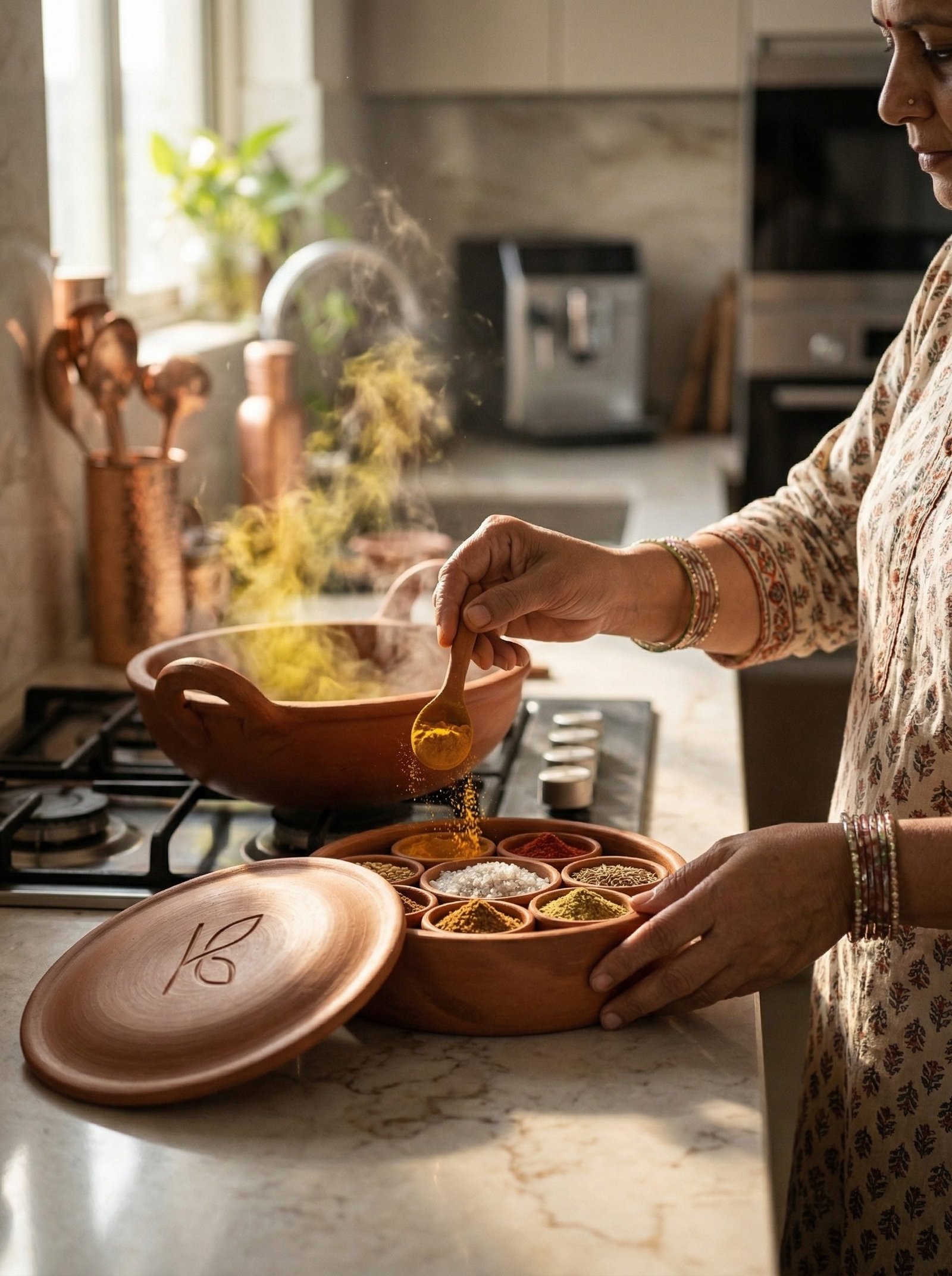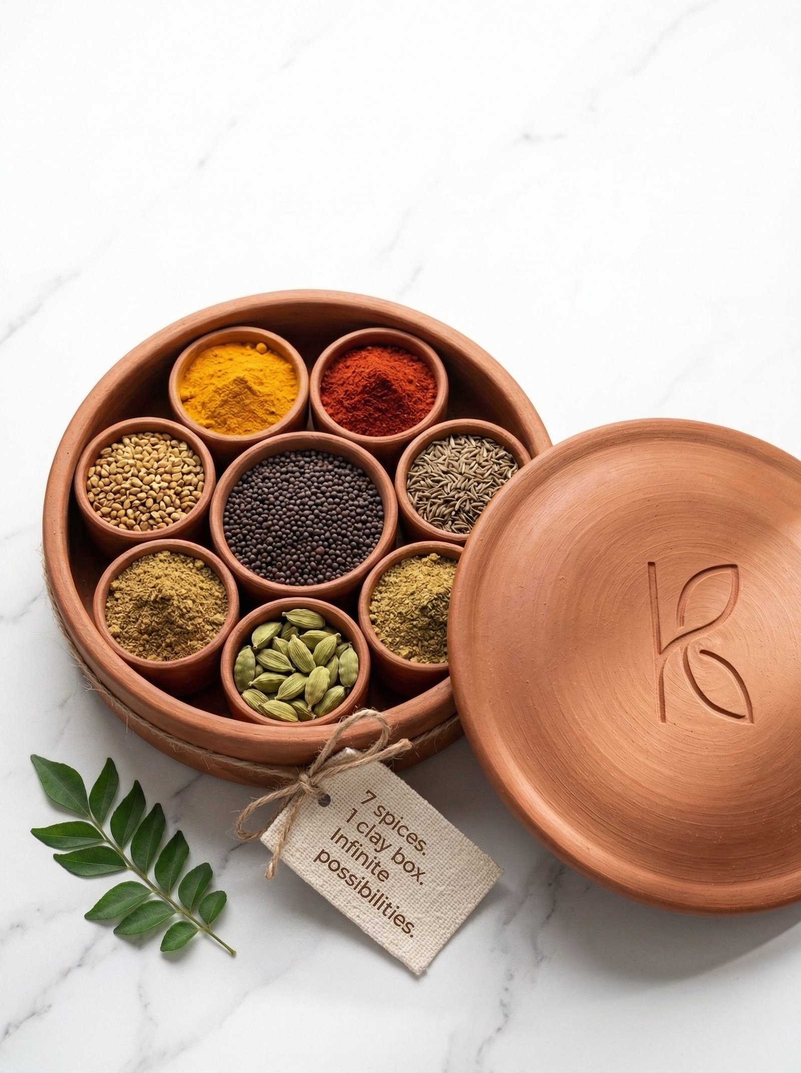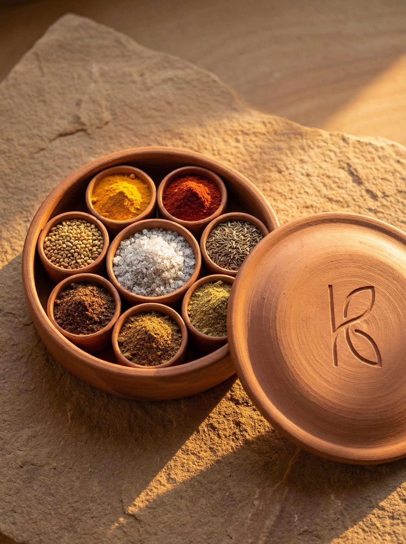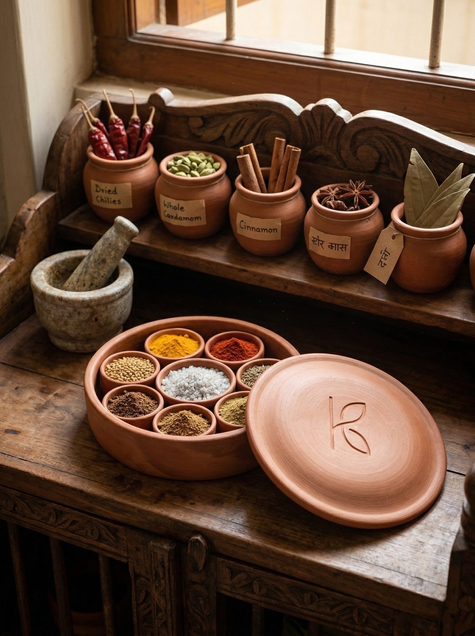 - Counter Presence: The masala dani is the most-touched object in the Indian kitchen. In clay, it is also the most beautiful.