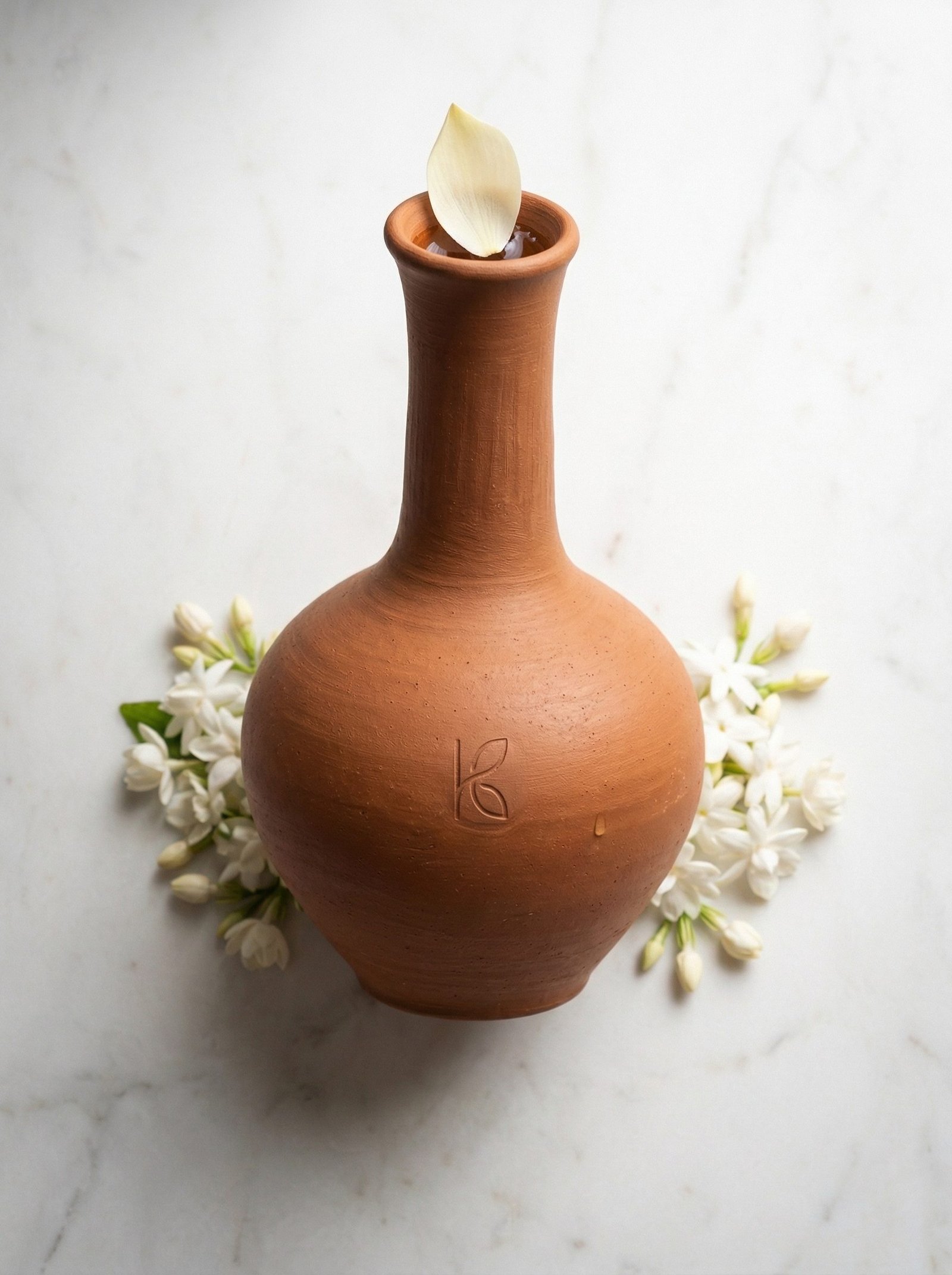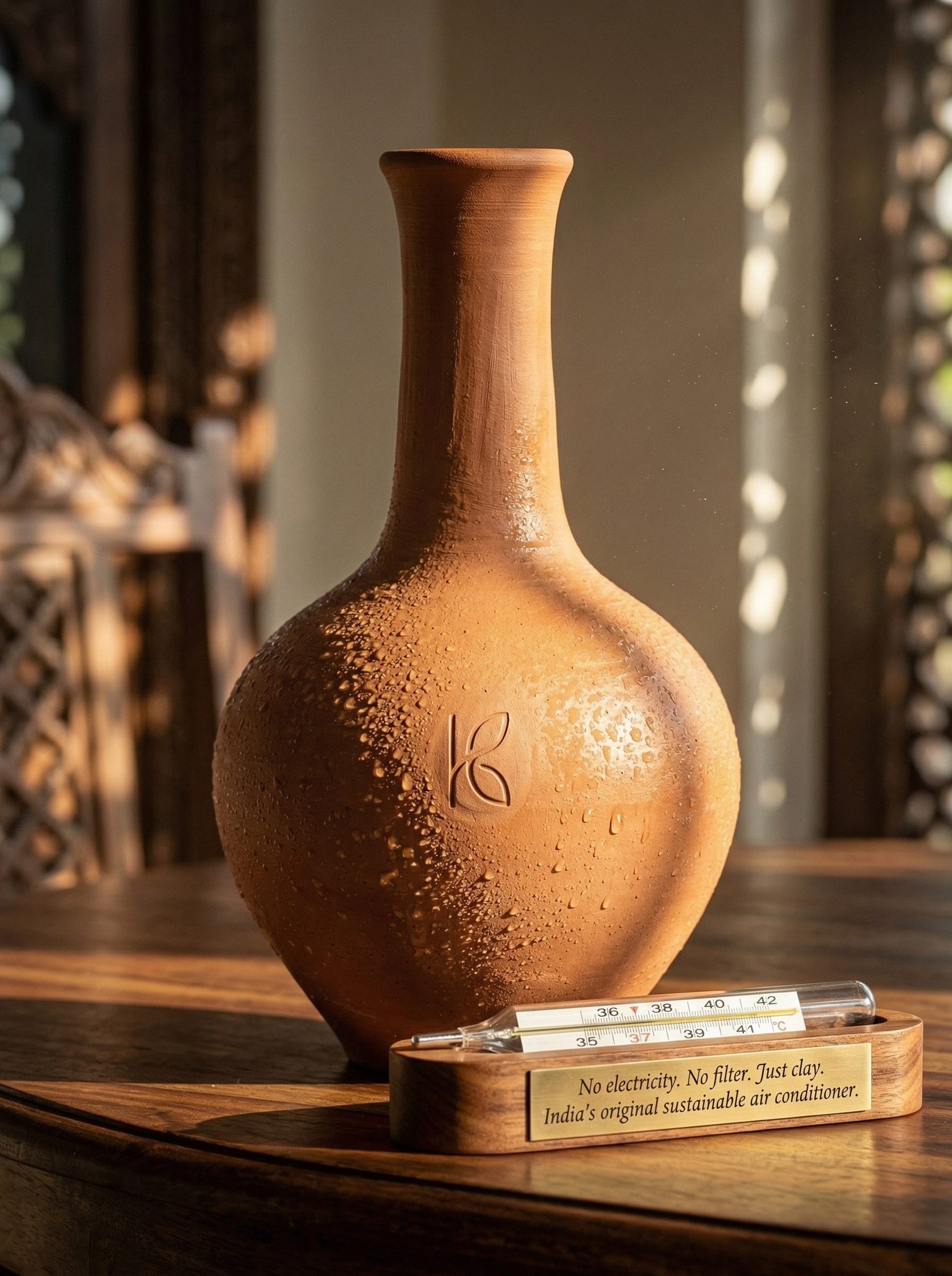 The surahi is the most recognisable clay water vessel in Indian history. Narrow neck, round body, elegant proportions unchanged in 4,000 years — because they were already correct. This is not nostalgia. The surahi’s geometry optimises evaporative cooling better than any other vessel form. XRF + ICP-OES certified. Aqua-Lock interior. Named artisan. The water vessel that needs no explanation.